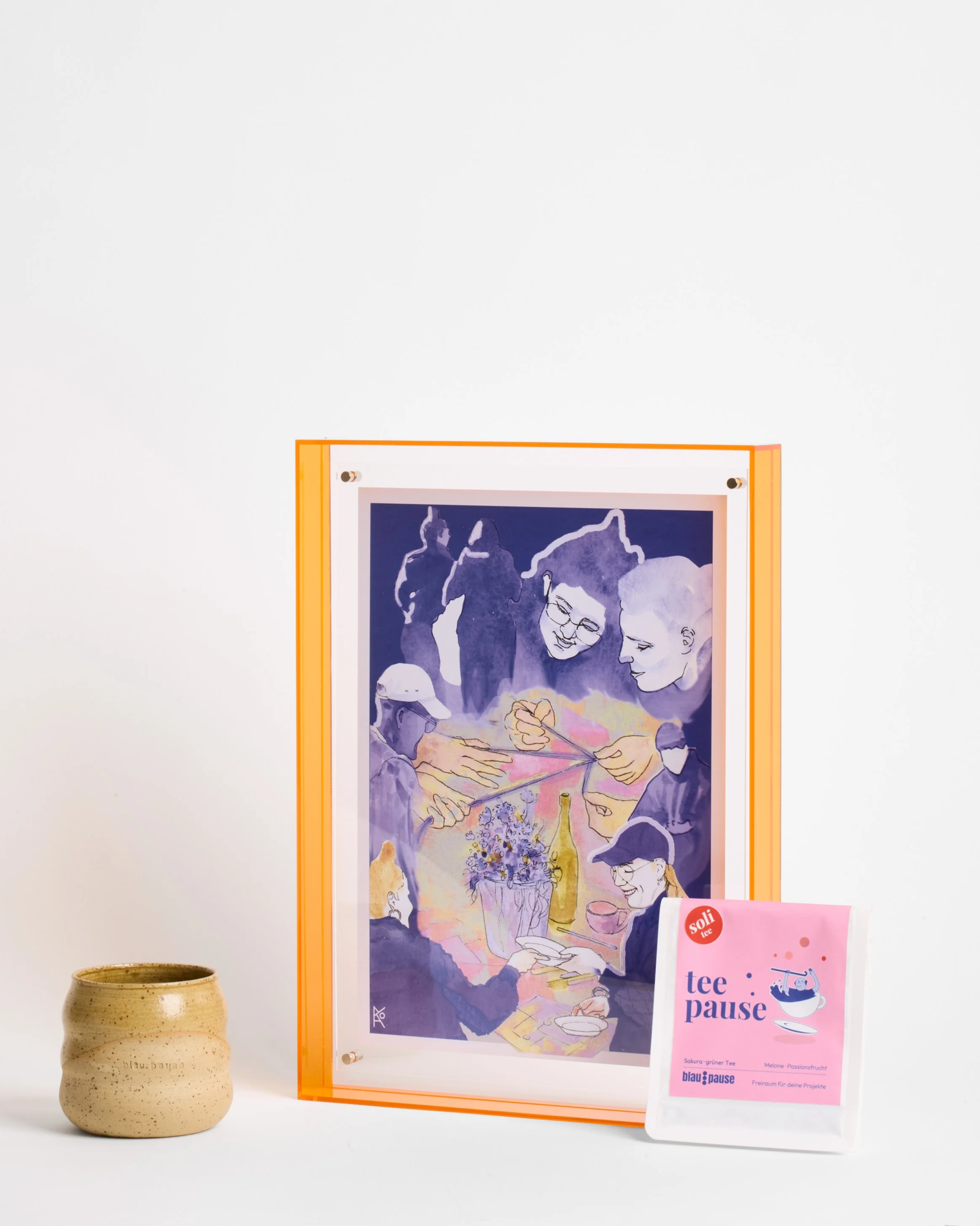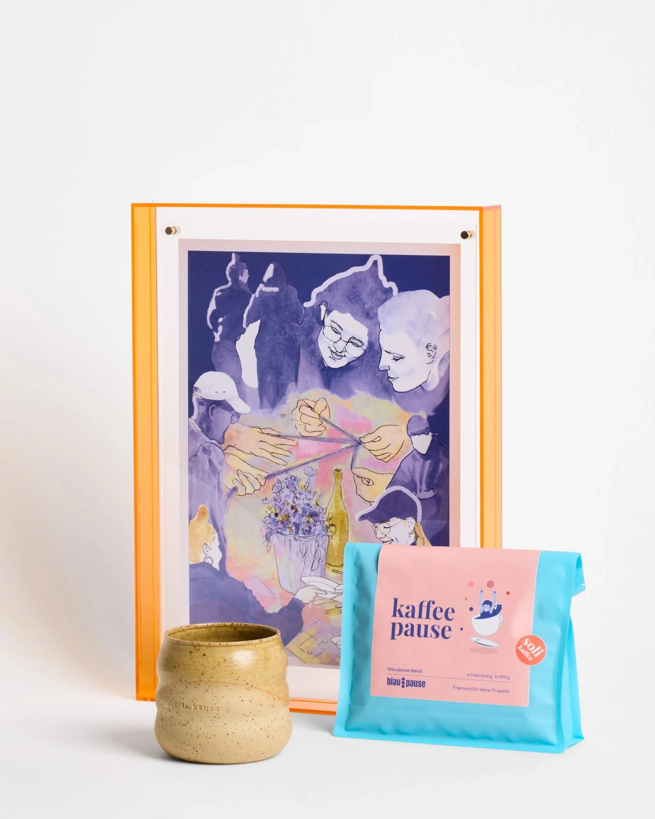 Für unsere Fördermitgliedschaften haben wir mit lokalen Künstler*innen zusammengearbeitet und besondere Goodies geschaffen: Kunstdrucke, handgefertigte Tassen sowie unseren Kaffee und Tee. Als Fördermitglied kannst du deine persönlichen Goodies auswählen