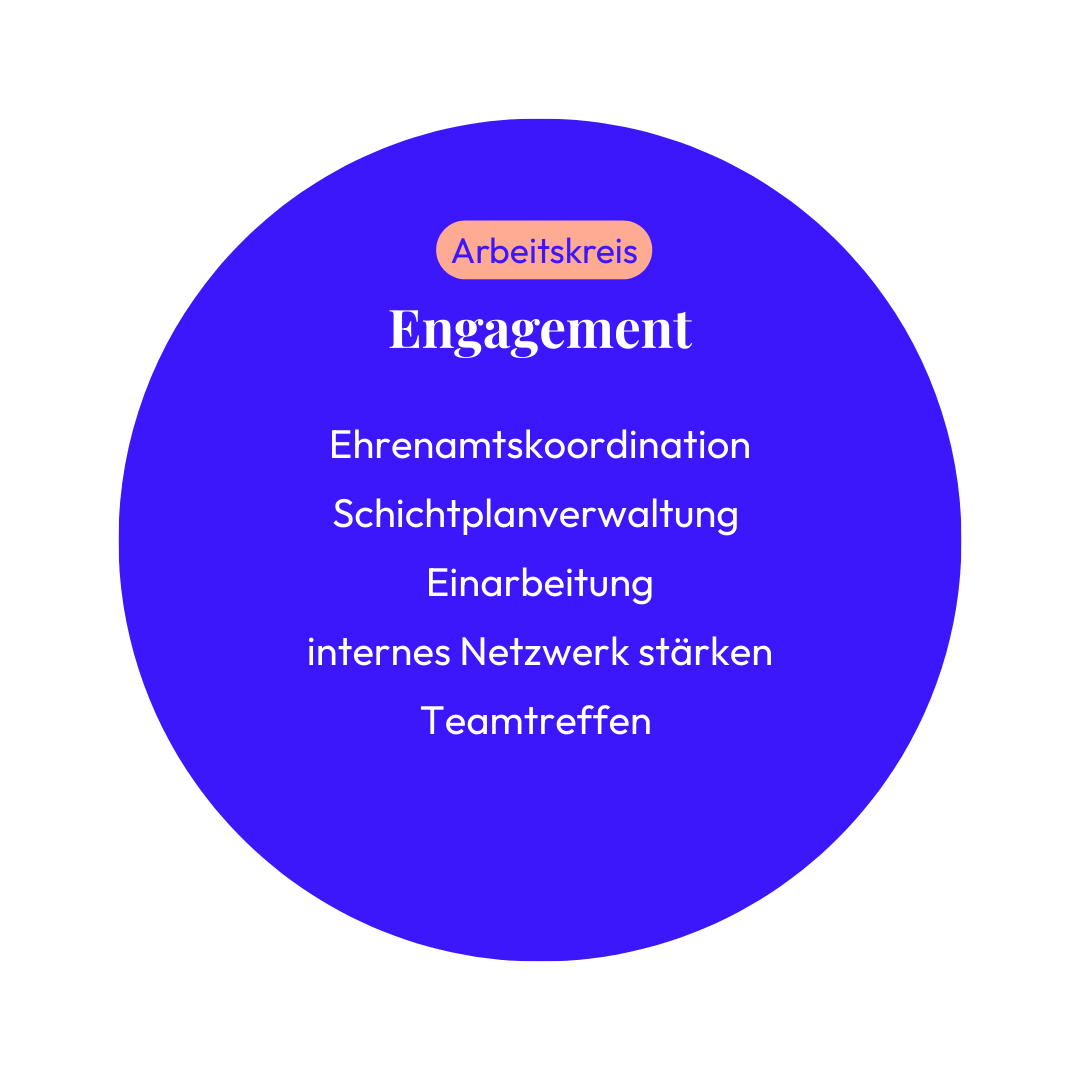 Alle Ehrenamtlichen und Hauptamtlichen engagieren sich bei uns in Arbeitskreisen – kleinen Teams, die sich mit bestimmten Themenbereichen befassen. Darüber hinaus gibt es Projektkreise: zeitlich begrenzte Projekte, in denen Mitglieder aus verschiedenen Arbeitskreisen interdisziplinär zusammenarbeiten, um gemeinsame Projekte umzusetzen. Arbeitskreise, Projektkreise und Vorstand treffen sich alle zwei Wochen im Plenum. Darüber hinaus treffen sich die meisten Arbeitskreise ebenfalls im Rhythmus von zwei Wochen.